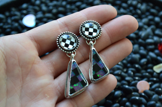 CHECKERED DANGLE EARRINGS