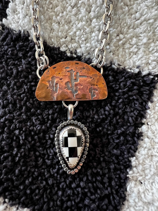 Copper Cactus & Checkered Pendant