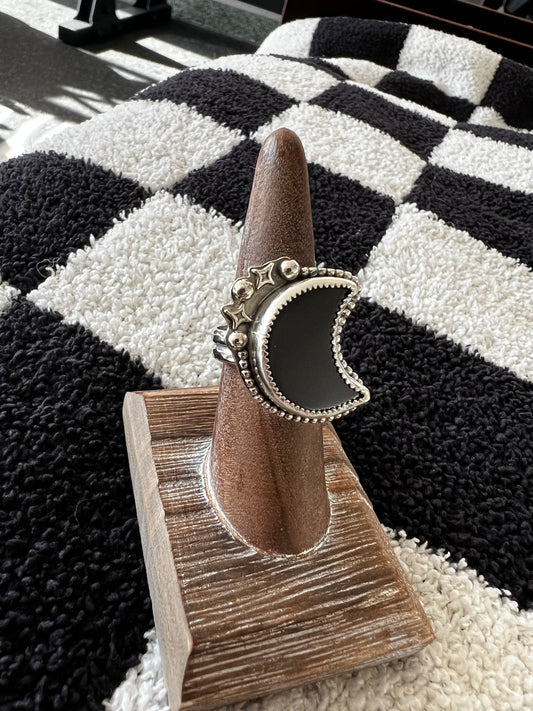 Black Obsidian Moon Ring Size 6 3/4