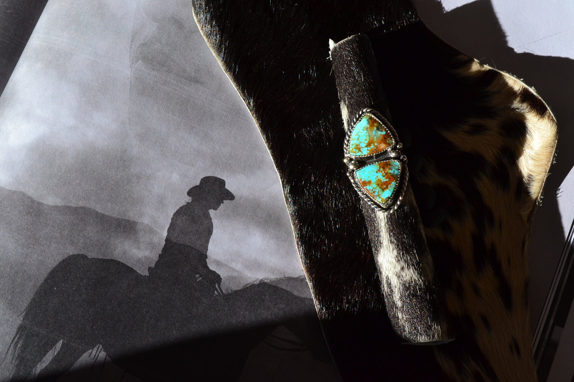 STERLING SILVER KINGMAN TURQUOISE ARROW RING SIZE 6 3/4